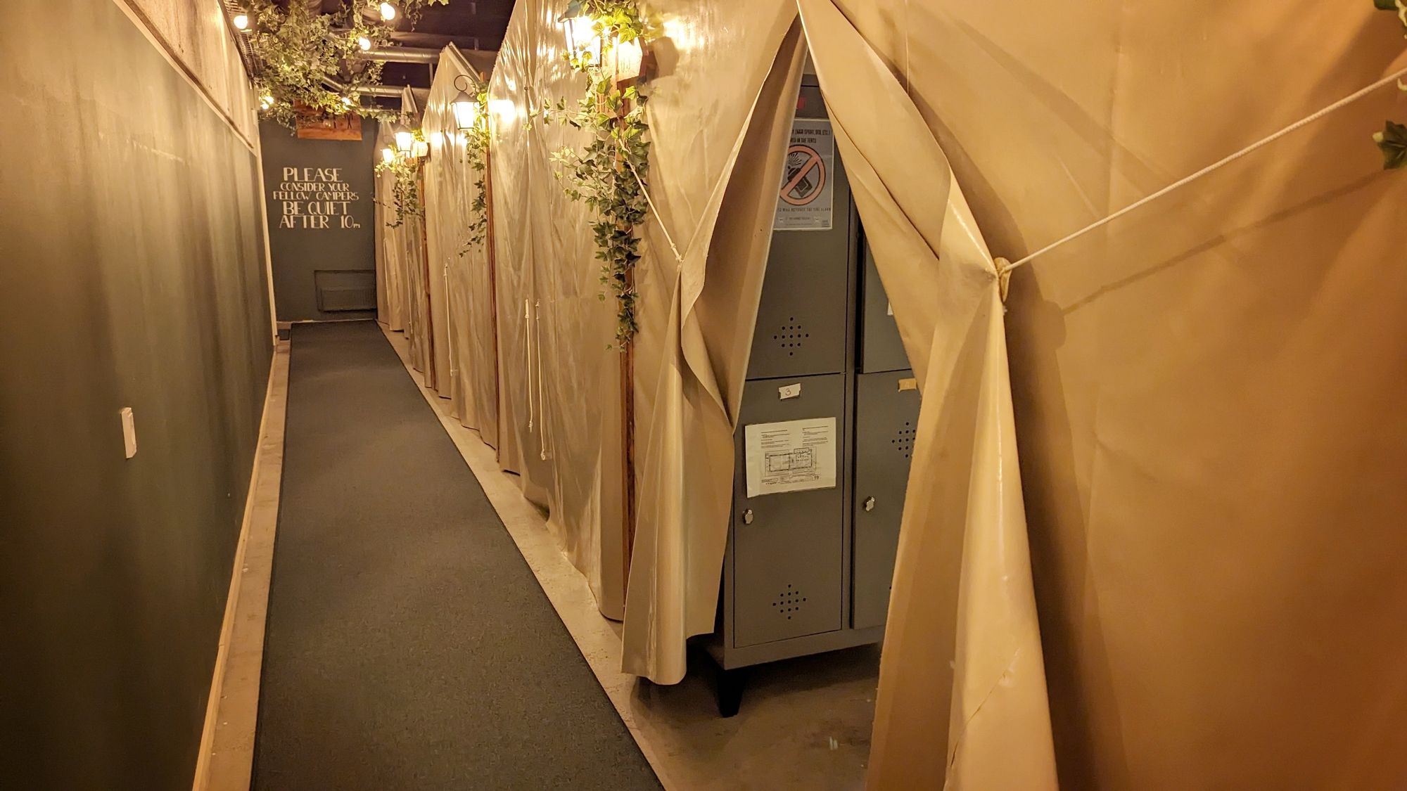 I'm shown to a tent, which is empty apart from 4 bunkbeds & lockers...