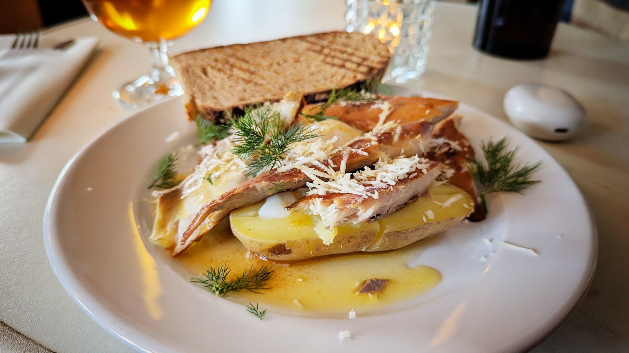 I go and sit down, the waiter comes over, and not wanting to be the typical English tourist I attempt to ask him, in Swedish, if he speaks English...